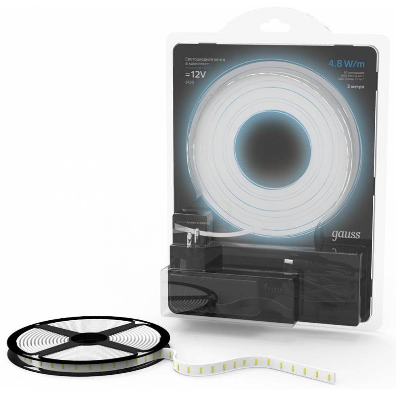 Лента светодиод. Gauss SMD 3м (312000248)