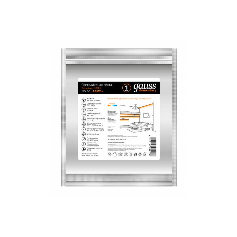 Лента светодиод. Gauss Elementary 5м (355000105)