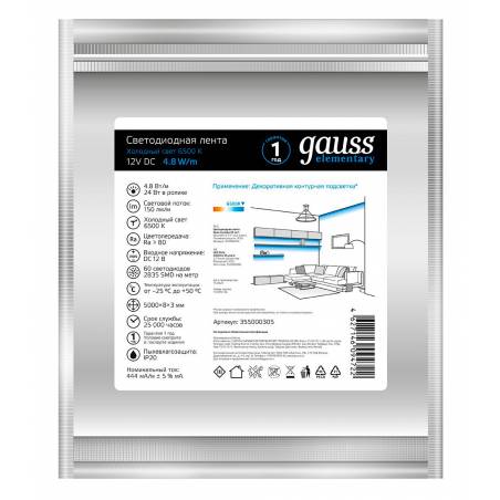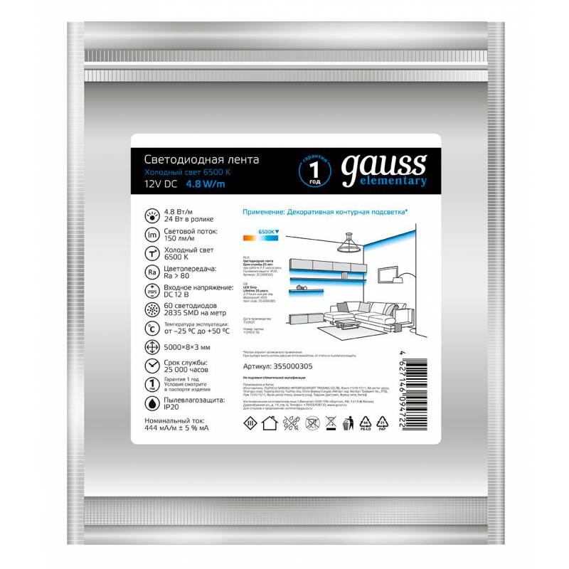 Лента светодиод. Gauss Elementary 5м (355000305)