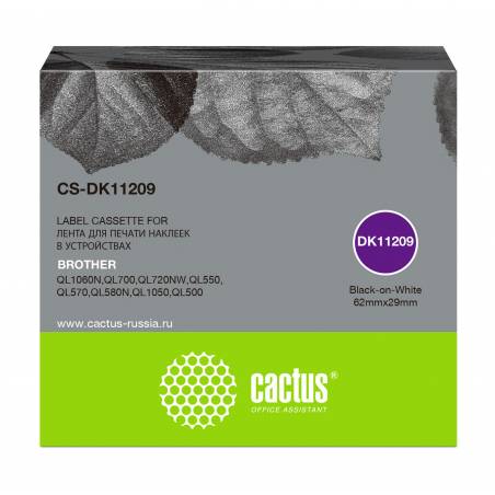 Картридж ленточный Cactus CS-DK11209 DK-11209 черный на белом для Brother P-touch QL-500, QL-550, QL-700, QL-800