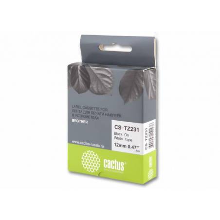 Картридж ленточный Cactus CS-TZ231 TZe-231 черный на белом 12x8 для Brother 1010/1280/1280VP/2700VP