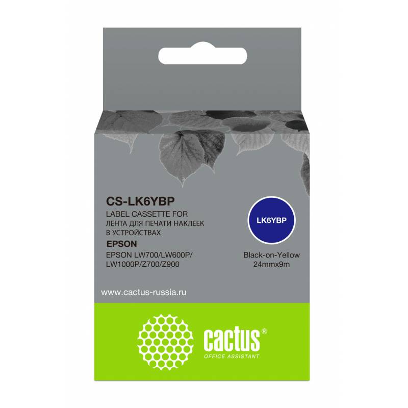 Картридж ленточный Cactus CS-LK6YBP LK-6YBP черный на желтом 24x9 для Epson LW700/LW600P/LW1000P/Z700/Z900