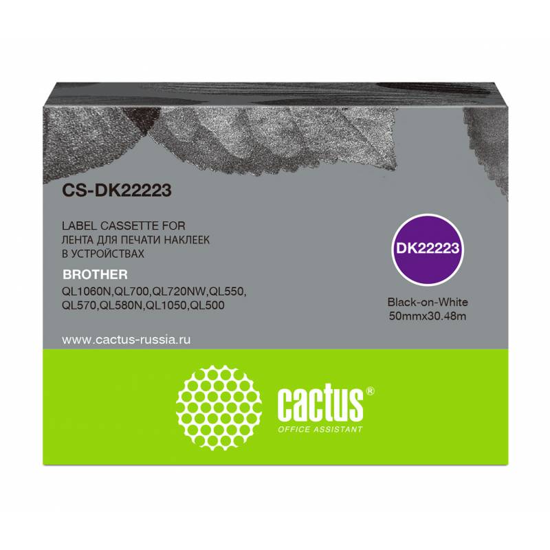 Картридж ленточный Cactus CS-DK22223 DK-22223 черный на белом 50x30.48 для Brother P-touch QL-500, QL-550, QL-700, QL-800