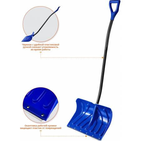 - Морозоустойчивый ударопрочный пластик обеспечивает долгий срок службы изделия. Стальная окантовка рабочей кромки защищает пластик от повреждений.