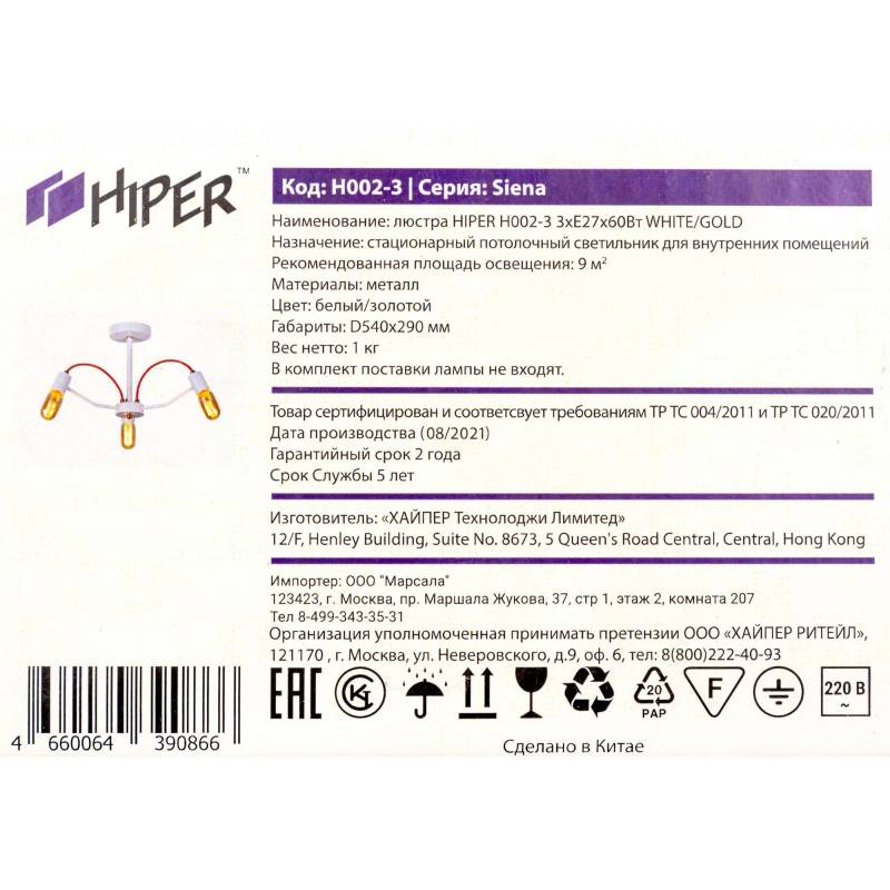 Люстра Hiper Siena H002-3 потолоч. белый/золотистый
