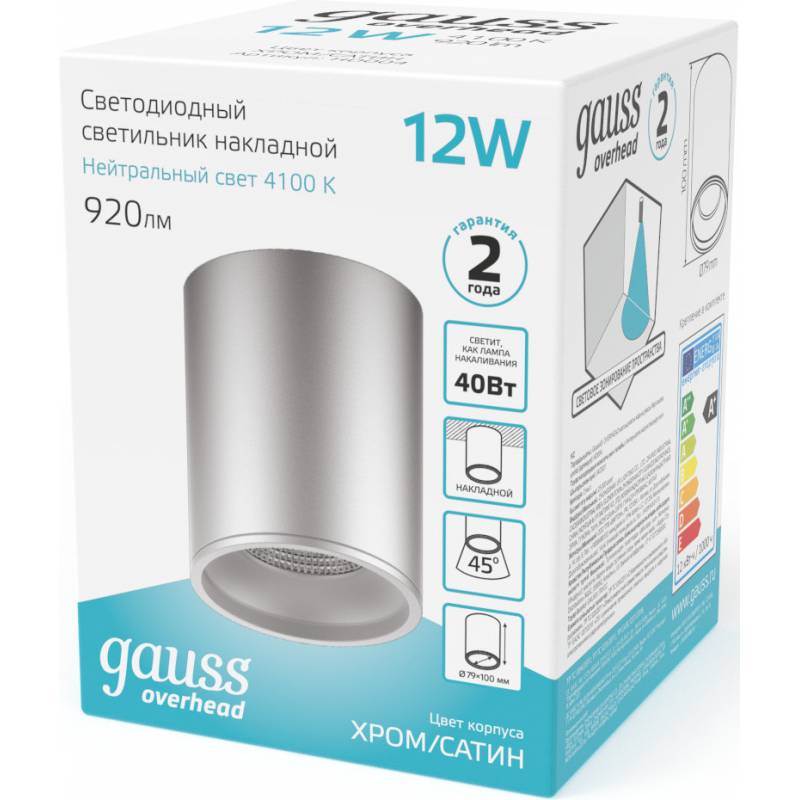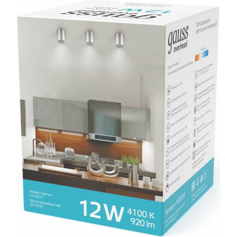 Светильник Gauss Overhead HD004 потолоч. 4100K цв.св.:белый серебристый