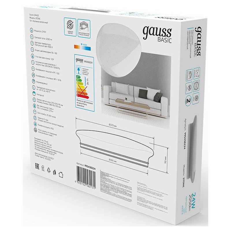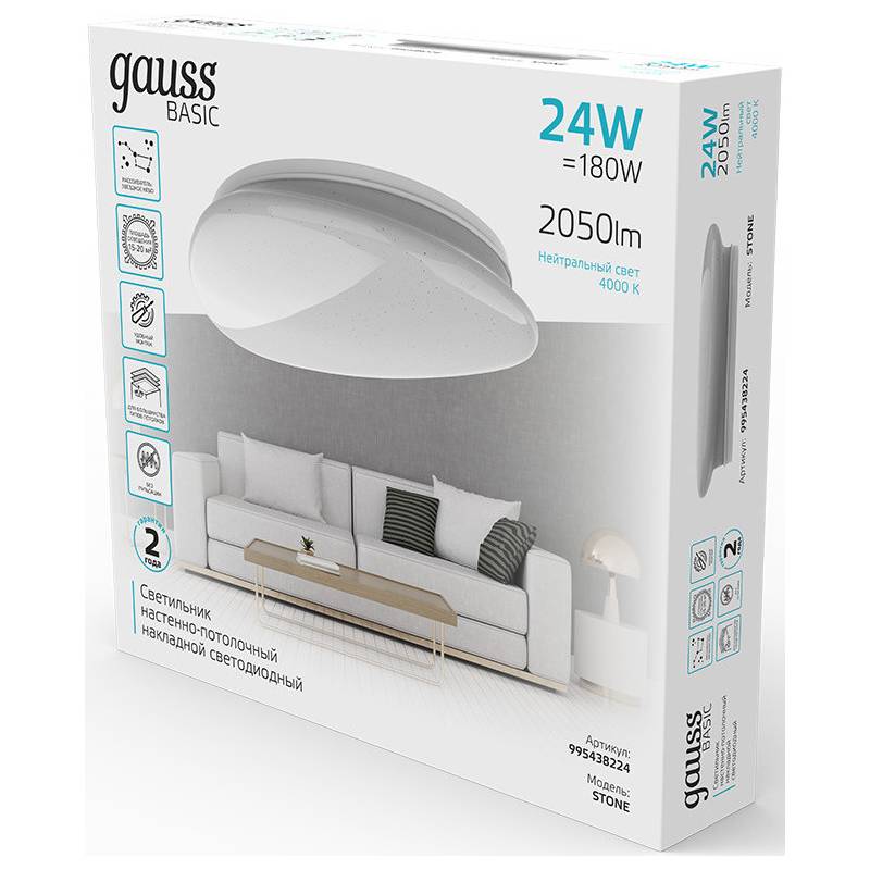 Светильник Gauss Basic Space Stone потолоч. 4000K цв.св.:белый белый (995438224)