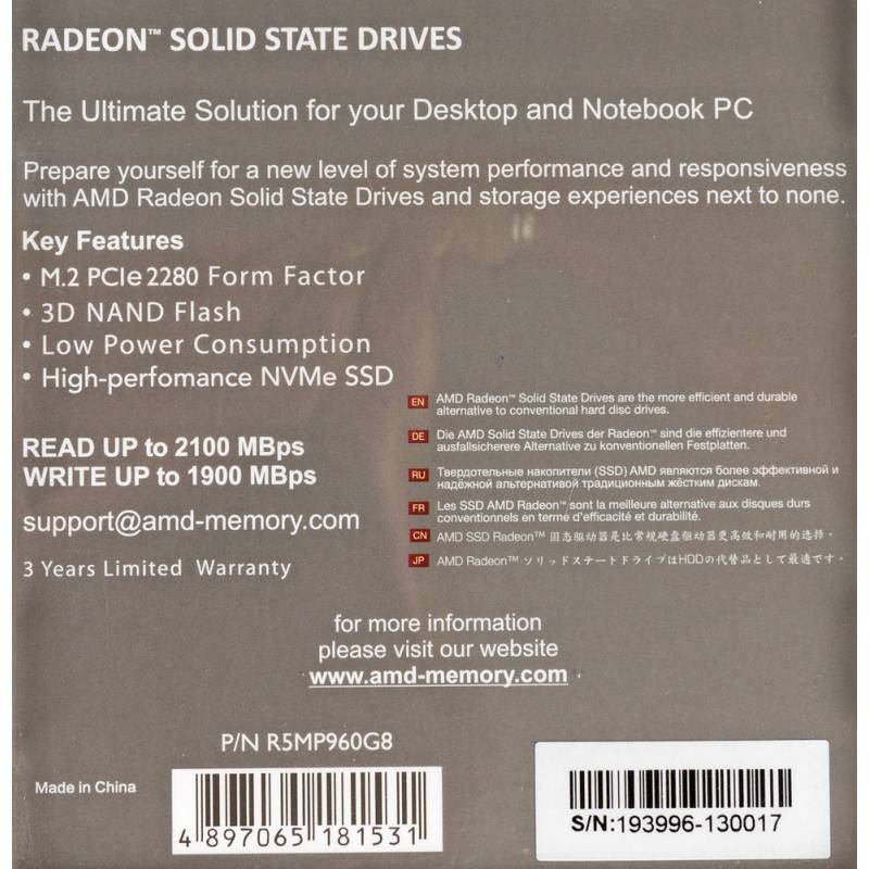 Накопитель SSD AMD PCIe 3.0 x4 960GB R5MP960G8 Radeon M.2 2280