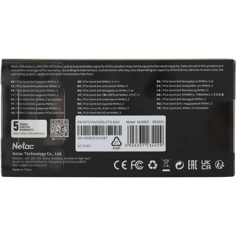 Накопитель SSD Netac PCIe 4.0 x4 2TB NT01NV5000-2T0-E4X NV5000 M.2 2280