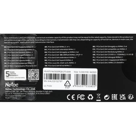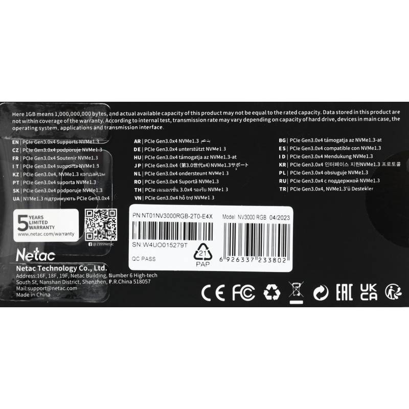 Накопитель SSD Netac PCIe 3.0 x4 2TB NT01NV3000RGB-2T0-E4X NV3000 RGB M.2 2280