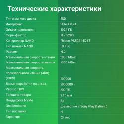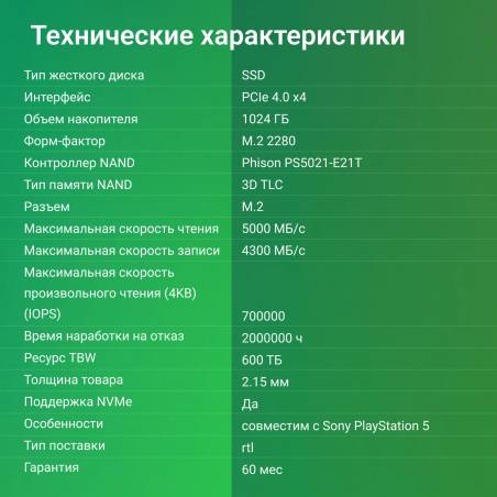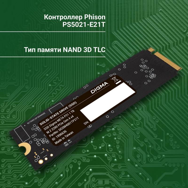 Накопитель SSD Digma PCIe 4.0 x4 1TB DGSM4001TP21T Meta P21 M.2 2280