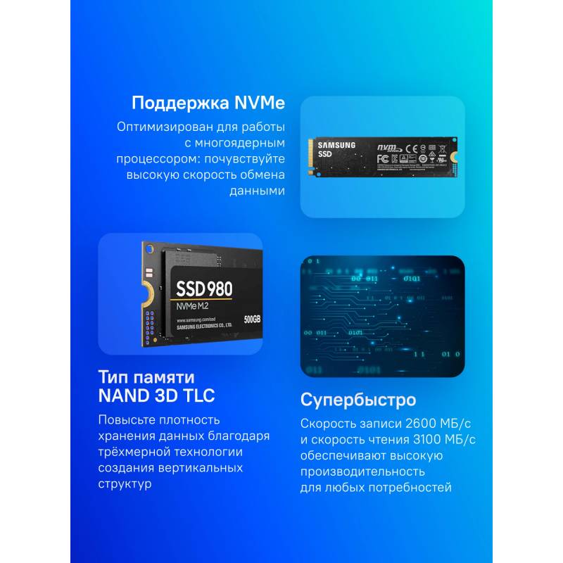 Накопитель SSD Samsung PCIe 3.0 x4 500GB MZ-V8V500BW 980 M.2 2280