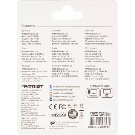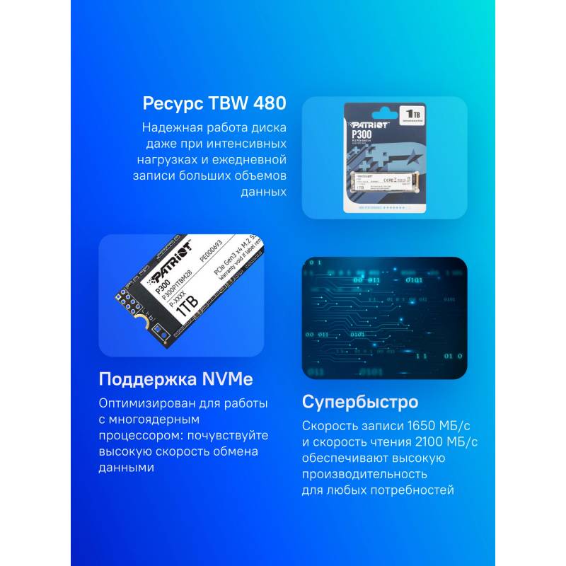 Накопитель SSD Patriot PCIe 3.0 x4 1TB P300P1TBM28 P300 M.2 2280