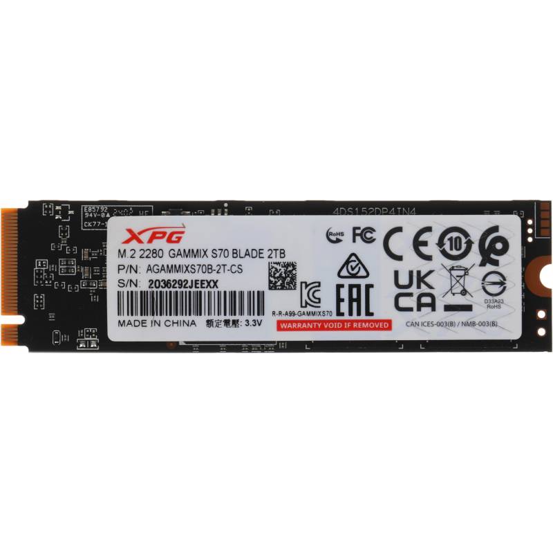 Накопитель SSD A-Data PCIe 4.0 x4 2TB AGAMMIXS70B-2T-CS XPG Gammix S70 Blade M.2 2280