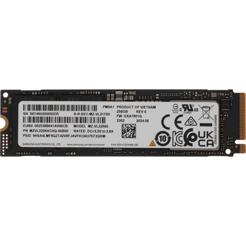 Накопитель SSD Samsung PCIe 4.0 x4 256GB MZVL2256HCHQ-00B00 PM9A1 M.2 2280 OEM