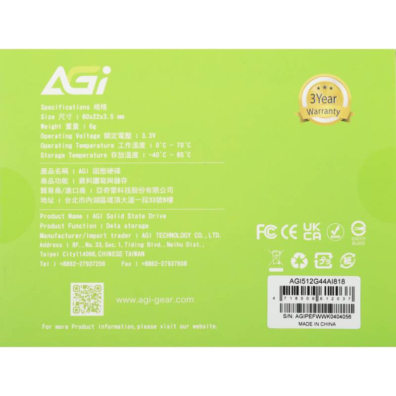 Накопитель SSD AGi PCIe 4.0 x4 512GB AGI512G44AI818 AI818 M.2 2280