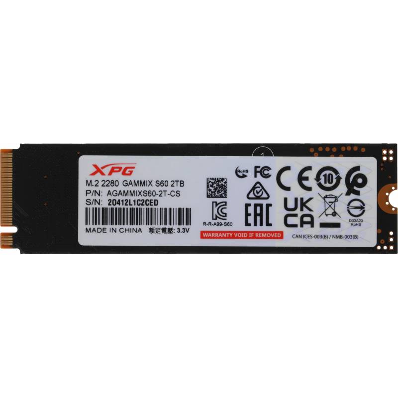 Накопитель SSD A-Data PCIe 4.0 x4 2TB AGAMMIXS60-2T-CS Gammix S60 XPG M.2 2280