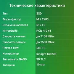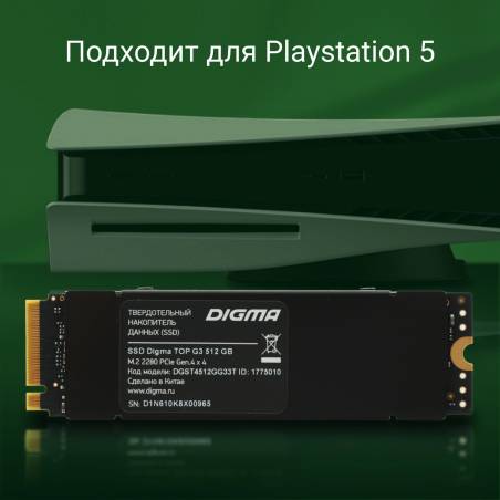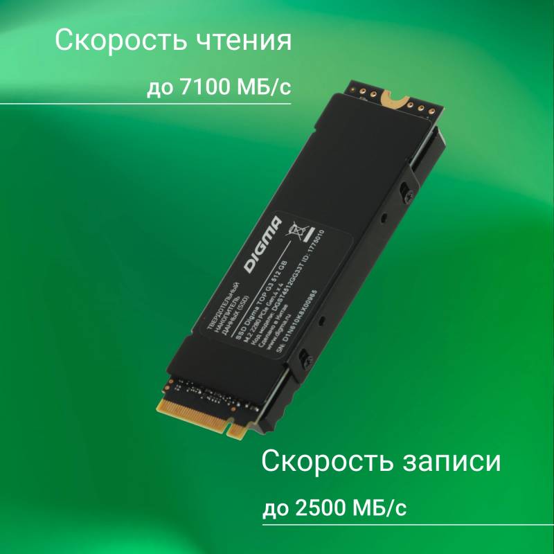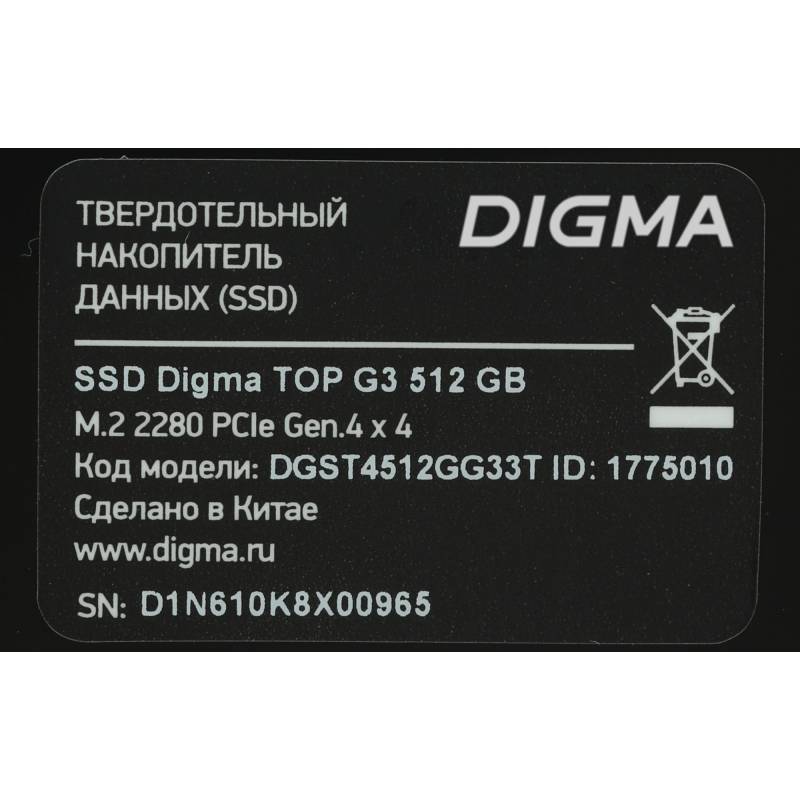Накопитель SSD Digma PCIe 4.0 x4 512GB DGST4512GG33T Top G3 M.2 2280