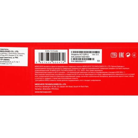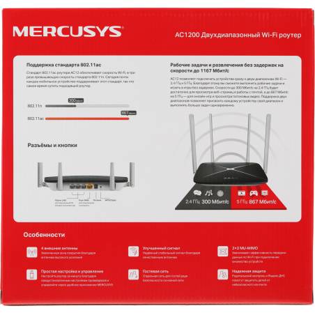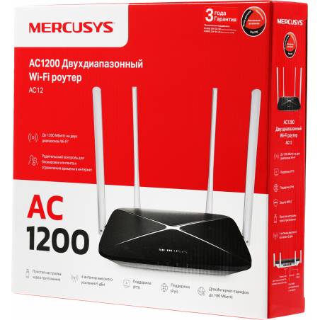 Роутер беспроводной Mercusys AC12 AC1200 10/100BASE-TX черный