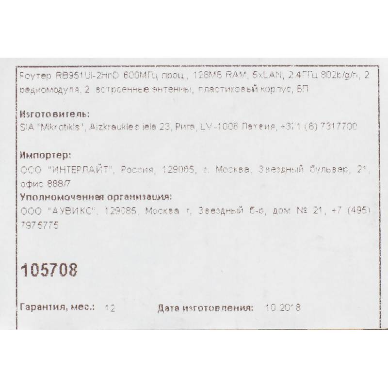 Роутер беспроводной MikroTik RB951UI-2HND N300 10/100BASE-TX белый