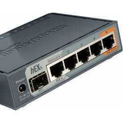 - Маршрутизатор MikroTik hEX S (RB760iGS) - обновленный пятипортовый гигабитный роутер для небольших сетей со средней нагрузкой. Наиболее производительная модель из сегмента недорогих SOHO-решений.