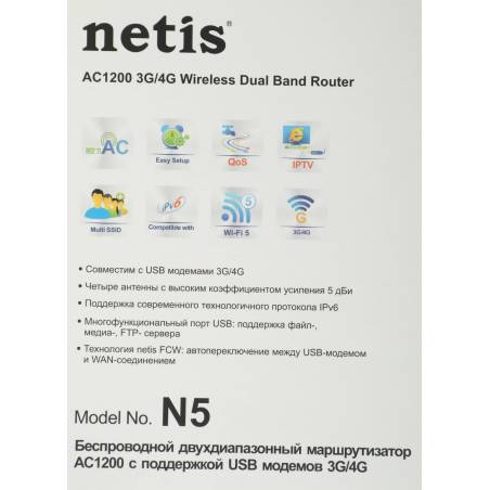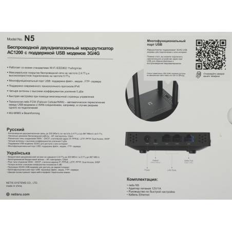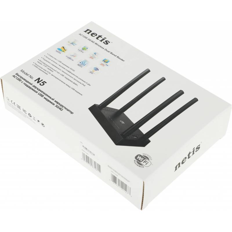 Роутер беспроводной Netis N5 AC1200 10/100BASE-TX/4G ready черный