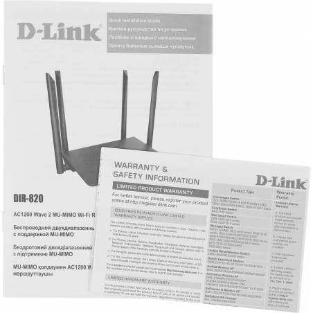 Роутер беспроводной D-Link DIR-820/RU/A1A AC1200 10/100BASE-TX черный