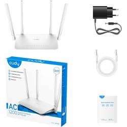 - Маршрутизатор Wi-Fi AC1200, cетевой адаптер питания от 220В (АС), RJ45 Ethernet-кабель, краткое руководство по установке
