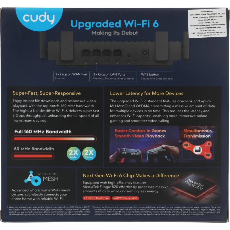 Роутер беспроводной Cudy WR3000 AX3000 10/100/1000BASE-TX/Wi-Fi черный
