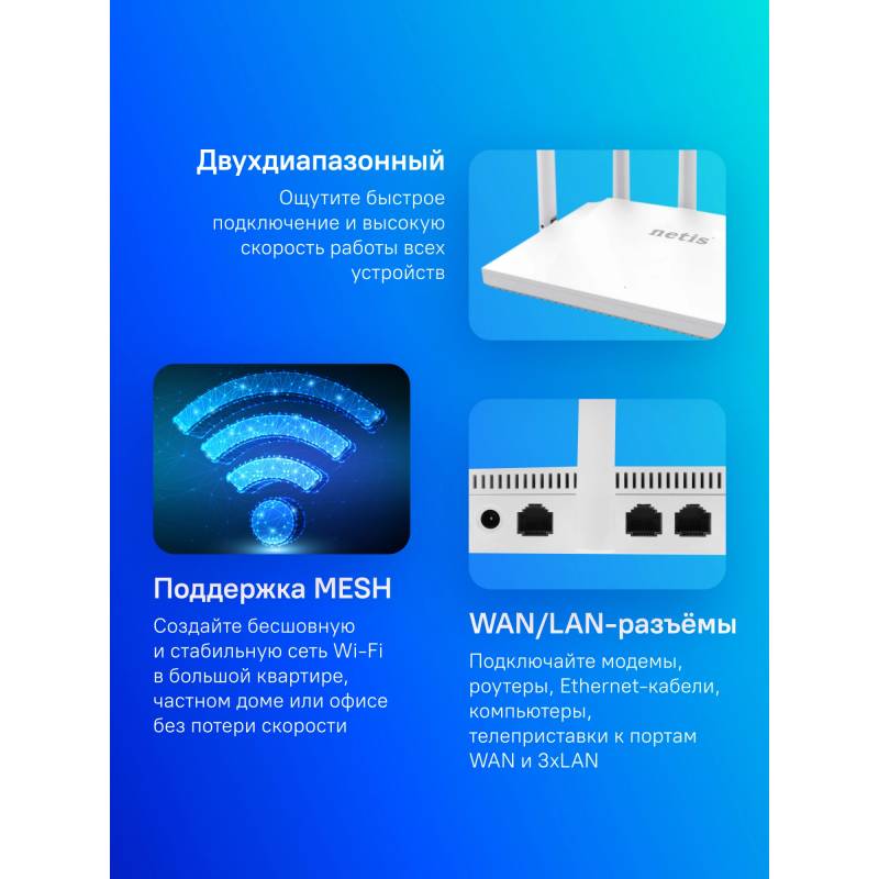 - Поддержка IPv6. Функция netis Easy Mesh - бесшовный Wi-Fi дома, в квартире и офисе. Также можно отметить поддержку всех популярных у провайдеров типов подключения, и мощный чипсет с тактовой частотой 1 ГГц