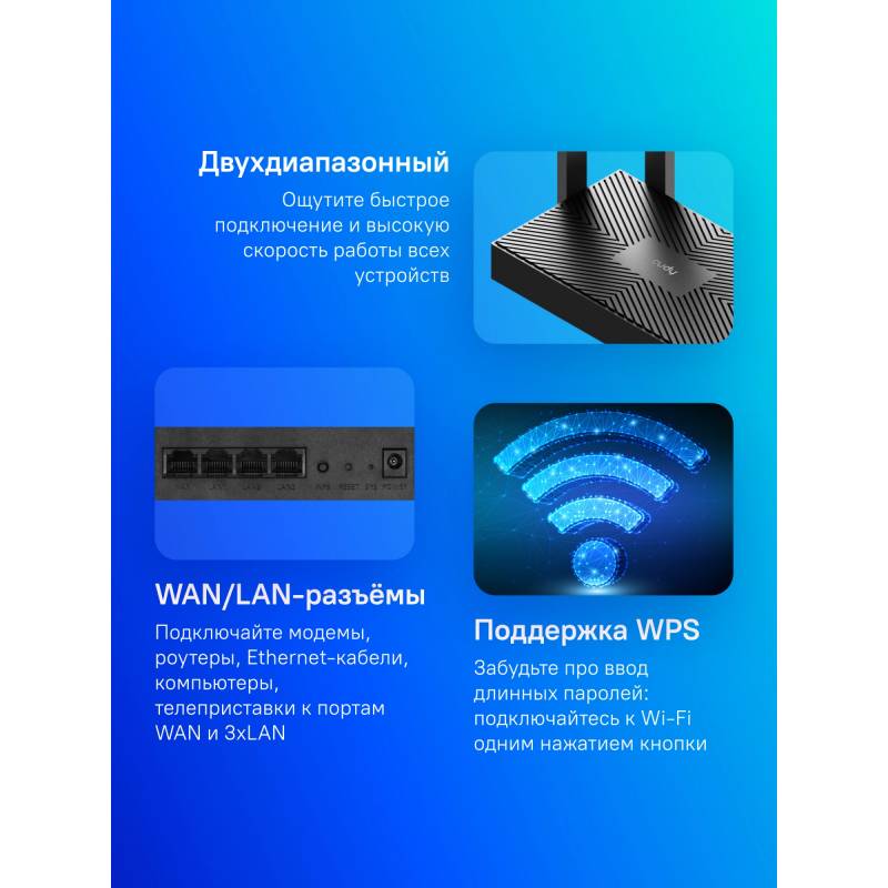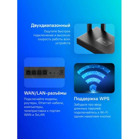 - AX1500 Wi-Fi 6 роутер, адаптер питания, RJ45 Ethernet кабель, руководство быстрой установки