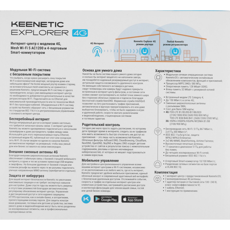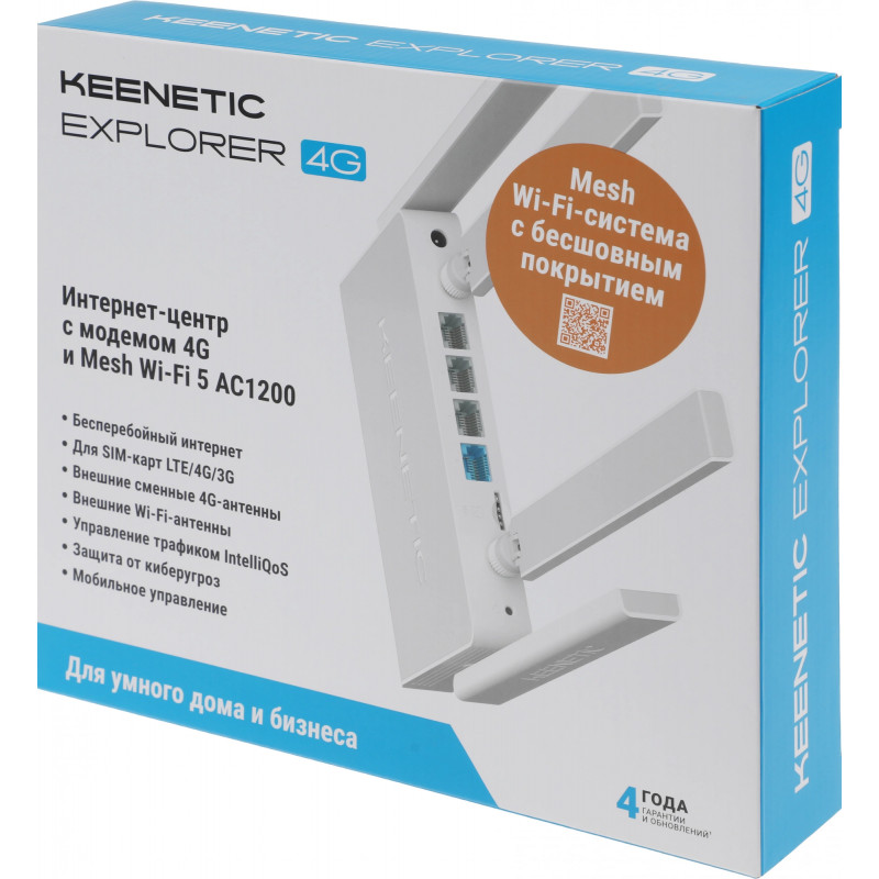 Роутер беспроводной Keenetic Explorer 4G (KN-4910) AC1200 10/100BASE-TX/4G cat.4 белый