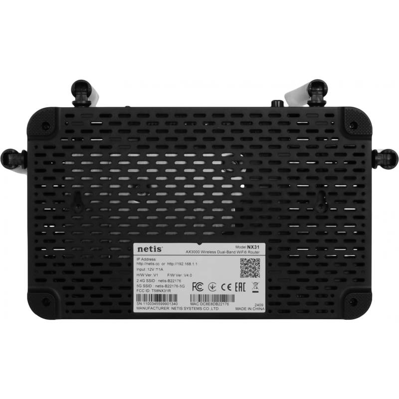 Роутер беспроводной Netis NX31 AX3000 10/100/1000BASE-TX черный