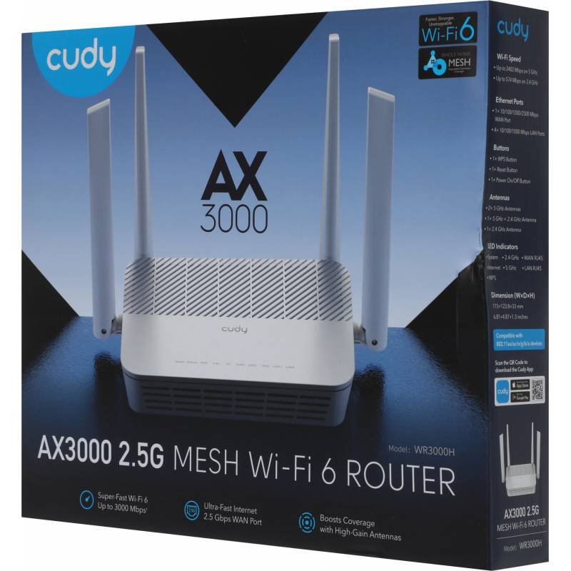 Роутер беспроводной Cudy WR3000H AX3000 100/1000/2500BASE-T белый