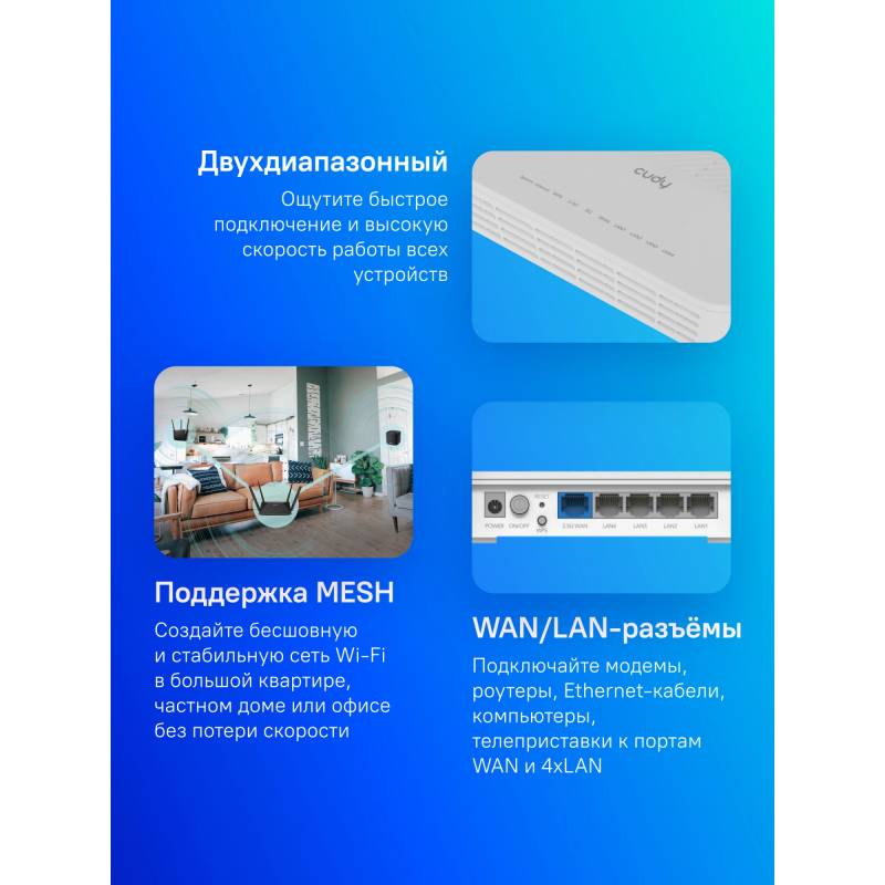 - Beamforming, DHCP-сервер, Dynamic DNS (DDNS), MESH, UPnP, VPN, WPS, поддержка IPTV, протокол IPv6