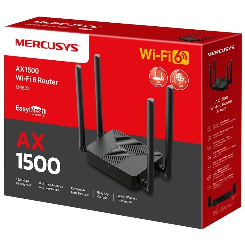 Роутер беспроводной Mercusys MR62X AX1500 10/100/1000BASE-TX черный