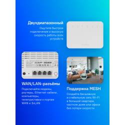 - Beamforming, DHCP-сервер, Dynamic DNS (DDNS), MESH, QoS, UPnP, VPN, Wake-on-LAN, WPS, поддержка IPTV, протокол IPv6