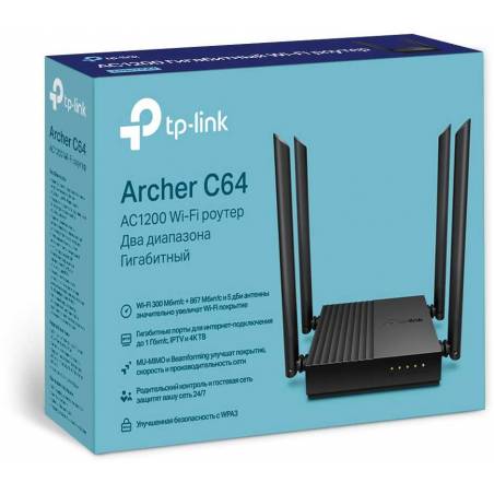 Роутер беспроводной TP-Link Archer C64 AC1200 10/100/1000BASE-TX черный