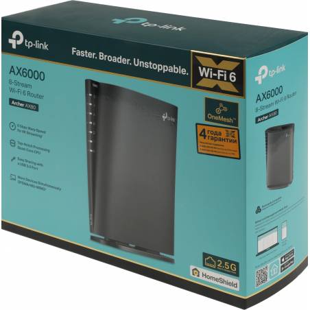 Роутер беспроводной TP-Link Archer AX80(EU) AX6000 100/1000/2500BASE-T черный