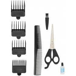 - масло, парикмахерская расческа, парикмахерские ножницы, щетка для чистки машинки