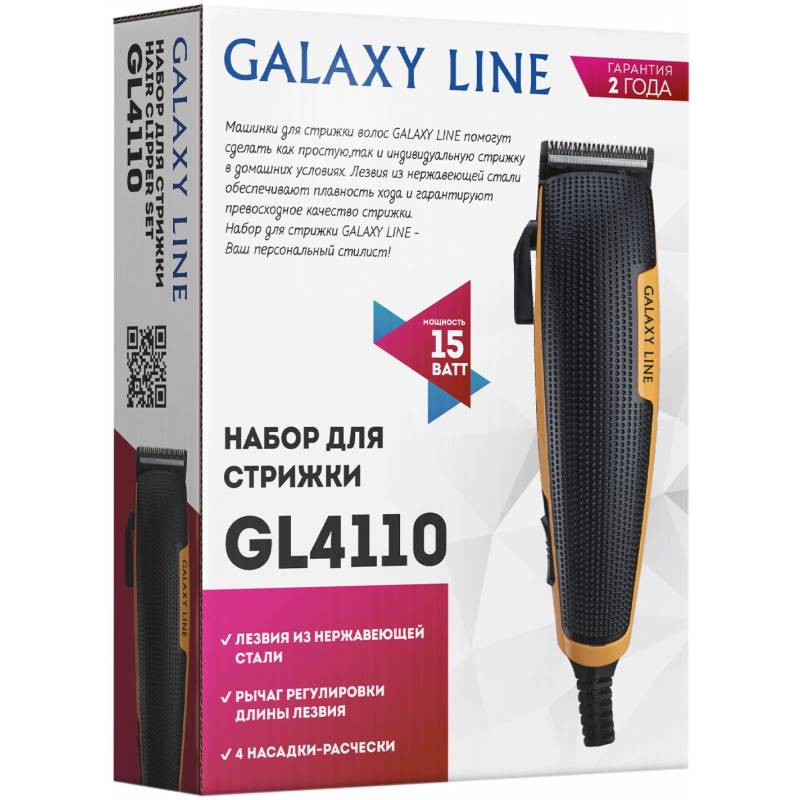 Машинка для стрижки Galaxy Line GL4110 черный/оранжевый 15Вт (насадок в компл:4шт)