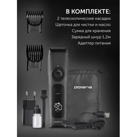 Машинка для стрижки Polaris PHC 2200 черный 100Вт (насадок в компл:2шт)