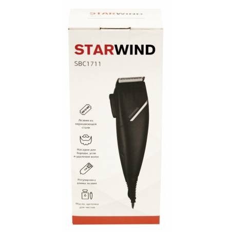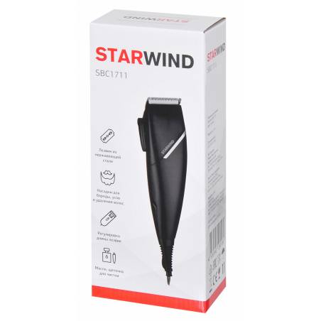 - Машинка для стрижки Starwind SBC1711 регулирует длину волос от 0,5 до 12 мм. Лезвия выполнены из нержавеющей стали, они прослужат не один год и долго останутся острыми. Встроенная технология позволяет снимать насадки одним щелчком, что облегчает уход за н