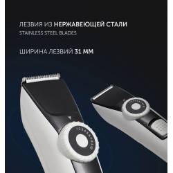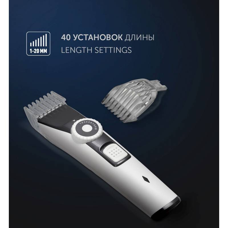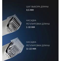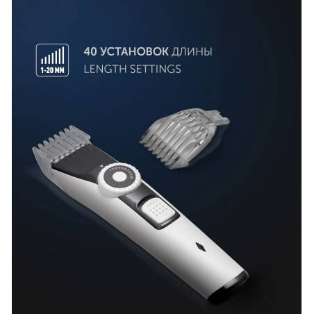 - Работа от аккумулятора. 40 установок длины: 1-20 мм, (шаг 0.5 мм). Минимальная длина стрижки 0.5 мм. 40 минут работы от аккумулятора. 8 часов для полного заряда. Лезвия из нержавеющей стали. 2 насадки-триммера. Ширина лезвия 31 мм.