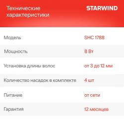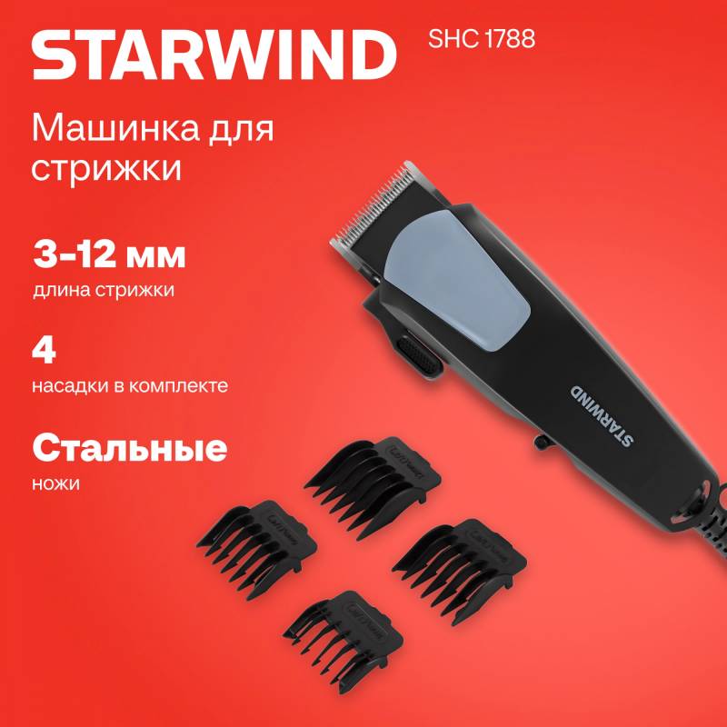 Машинка для стрижки Starwind SHC 1788 черный/серый 8Вт (насадок в компл:4шт)