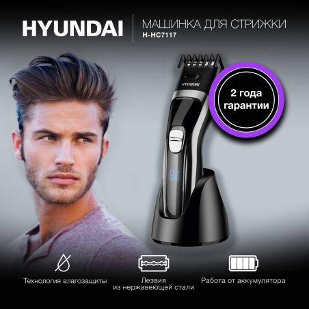 Машинка для стрижки Hyundai H-HC7117 черный 3Вт (насадок в компл:1шт)