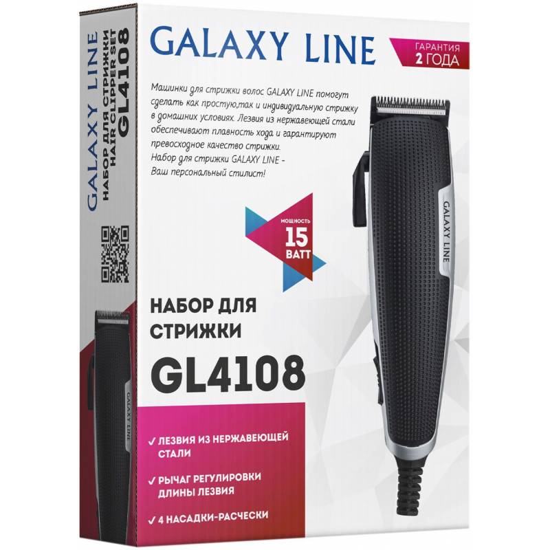 Машинка для стрижки Galaxy Line GL4108 черный 15Вт (насадок в компл:4шт)