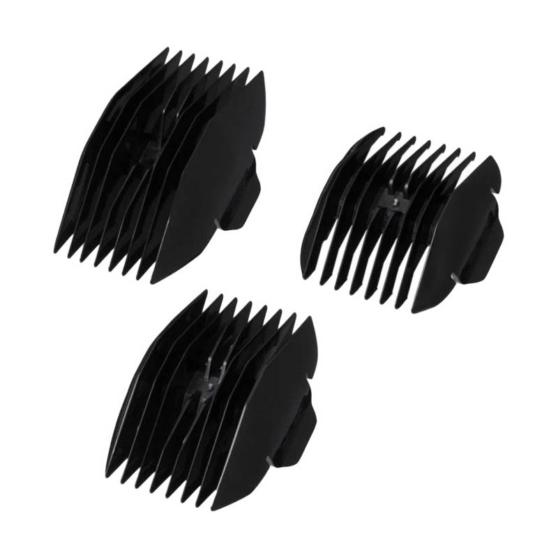 - 3 насадки для стрижки с 6 уровнями регулировки длины: 3, 6, 9, 12, 15, 18 мм.