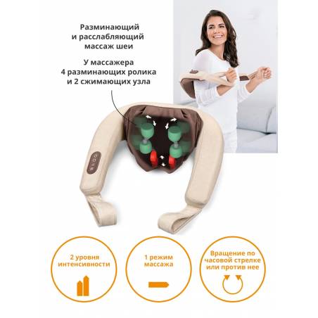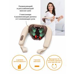 - 4 разминающих ролика и 2 сжимающих узла. Световое и тепловое воздействие. Со съемным чехлом, который можно стирать.