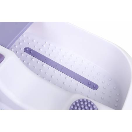 - 3 функции: поддержание равномерной температуры воды, вибромассаж и гидромассаж. С насадкой для массажа. Массажная стелька. Съемный брызговик. Отверстие для слива воды. Нескользящие резиновые ножки.